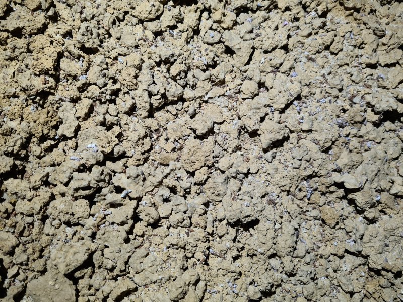 Texured mud created by freeze-thaw action during the last ice age. The purple dusting is guano.