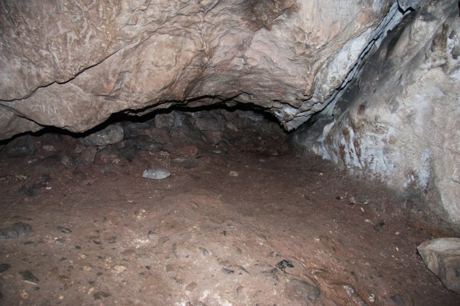 And the final crawl to a dig face. Despite the odd perched location the cave would have had back then, it was a Neolithic dwelling (around 5000 years old), and four Neolithic skeletons were found there (I was unable to easily find any more information about exact ages, since virtually all reports say 'prehistoric' or 'stone age', and only one thing - a sign in the nearby farm that controls access to the site - said the word 'Neolithic').